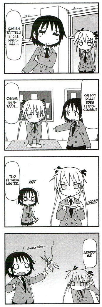 Ensimmäisen pokkarin jälkeen fiilis tätä strippisarjaa kohtaan oli perushaalea, mutta nyt alan jo lämmetä hahmoille. Vitsit perustuvat toistolle, jolloin hauskuus tulee uusista ympäristöistä ja tilanteista. Ja tapahtuupa hahmoissa pientä kehitystäkin, Yasuna kun alkaa aktiivisesti kepittämään Sonyan ammatillisia pyrkimyksiä. Sehän ei voi päättyä kuin huonosti.