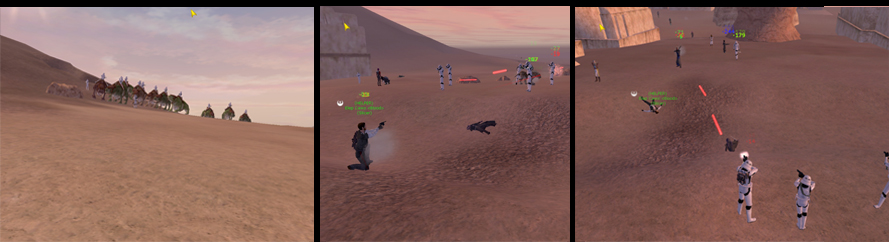 Star Wars Galaxies oli ensimmäinen MMORPG:ni (Massively multiplayer online roleplaying game). Lyhyesti määriteltynä MMO on jopa miljoonien pelaajien kansoittama peli, jossa jokaisella palvelimella pyörii jokunen tuhat pelaajaa. Jokainen palvelin on oma maailmansa. Kelatkaa, paljonko lapsia oli tarhassanne, tai moniko saapui häihinne. Paljonko oppilaita oli koulussanne? Ei silti riitä menestyvän pelin yhden palvelimen populaatioksi. Niitä samassa maailmassa pyöriviä ihmisiä on paljon.