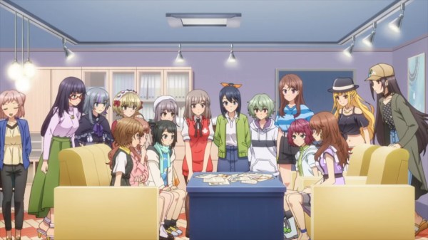 Kaarti on iso, mutta jakaantuu agentuurin projektien mukaan pieniksi yksiköiksi. Jotkut pääsevät esiintymään animessa, toinen poppoo päätyy duunaamaan jotain idoliproduktiota. Ratkaisu on hyvä. Ensinnäkin katsojan ei tarvitse oppia koko kööriä kerralla, ja hahmotkin voivat muodostaa merkityksellisiä suhteita välittömien kohtalotoveriensa kanssa.