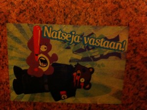 I hadn’t milled around that much during the previous parties but with a drink in my gut, another in my hand and a bunch of unsold booklets in my backback I waded into the crowd. I had been selling the booklets during the con on my own while Osuuskumma and Jyrki and Matti behind the Aavetaajuus table had been peddling them as well. A special big hand goes to Matti whose enthusiasm is neverdying (or perhaps undead).