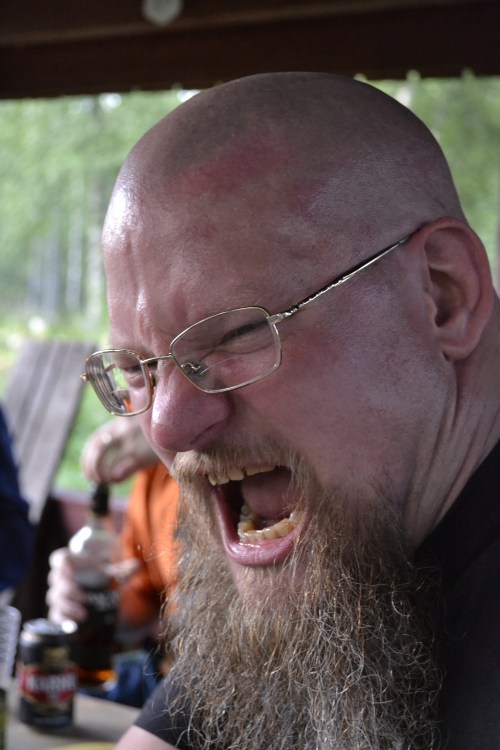 Vielä kerran kutsui grillikatos, josta käsin saattoi tarkkailla joki-Cthulhun pesimäpuuhia, mikäli se kohdalle sattui. Jossain vaiheessa keskustelun aiheeksi nousivat haasteet seuraavaa vuotta varten, ja sopivassa vauhdissa esitin minäkin omani. Mainittava kyllä on, että vain Tarja oli kyllin rohkea tarttuakseen siihen. Ensi kesän leirillä teemme kumpikin 200 peräkkäistä vatsalihasliikettä, tulilinjalla on puolen litran leka brandya. Varoitin kyllä Tarjaa siitä, että ihan niin kuuno tämä haaste ei ole kuin miltä minä näytän. Kolme vuotta sitten otin tavoitteeksi tuon 200 vatsalihasta ja onnistuinkin siinä. Sen jälkeen kyllä harjoitusohjelma on karahtanut karille aina kolmannen treeniviikon jälkeen, mutta nyt kun haaste on julkisesti esitelty, se ehkä antaa motivaatiota ylittää itsensä taas uudelleen. Kiinnostuneille vinkkaan kirittäjäksi sivuston two hundred sit-ups. Lähtekää muutkin mukaan.