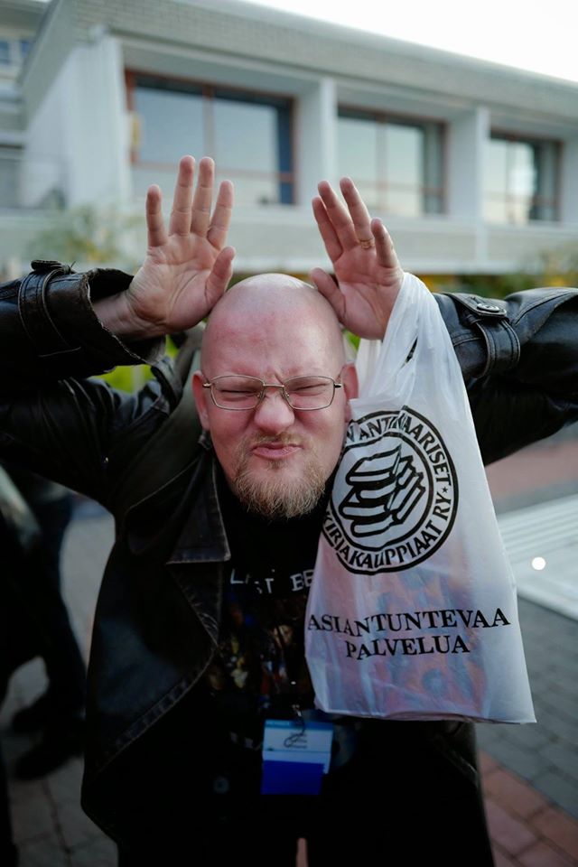 Kun auto oli siinä kunnossa, että sillä uskalsi lähteä isoille teille, oli aika pakata kimpsut ja kampsut, huikata heit ja suunnata baanalle. Eipä siihen pitäisi kauaa mennä. Harvoin olen ollut yhtä väärässä. Kyydissämme olivat palaamassa Boriksen lisäksi Morre ja poikansa Lari, joten sisätilat olivat täynnä ja takakontti useamman käytössä. Ja niin kävi, että kolme laatikollista kirjoja oli pakko jättää Annen murheeksi ja kuljetettavaksi Fantastisiin pitoihin, ne kun eivät mahtuneet hydraulipuristimellakaan. Tämä saattaa olla pieni merkki siitä, että kirjanhankintamopo karkasi lapasesta jossain vaiheessa viikonloppua, mutta mitä muka voi tehdä, kun kirjat maksavat kymmenen senttiä kappaleelta? Minä vain kysyn.