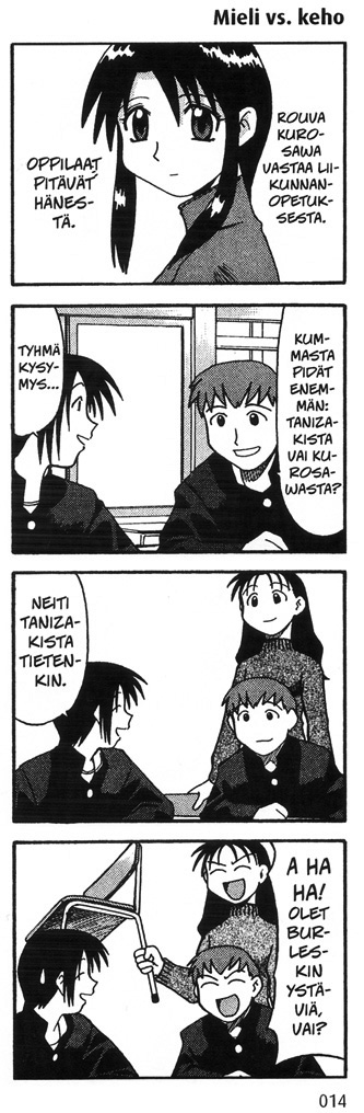 Lopputaistelun aikana Wolverine oli yllättävän kovasti helisemässä paria miekkaa vastaan etenkin kun ottaa huomioon sen, miten hän on pätkinyt koko albumin ajan miekkamiehiä pinoon. Mikseivät kynnet viipaloineet ilkeän isukin miekkoja partaveitsikokoon heti kättelyssä? En tiedä, ellei syynä sitten ollut taiteellinen vapaus. Tai tarve venyttää hurjaa lopputaistelua järkisyistä viis veisaten.