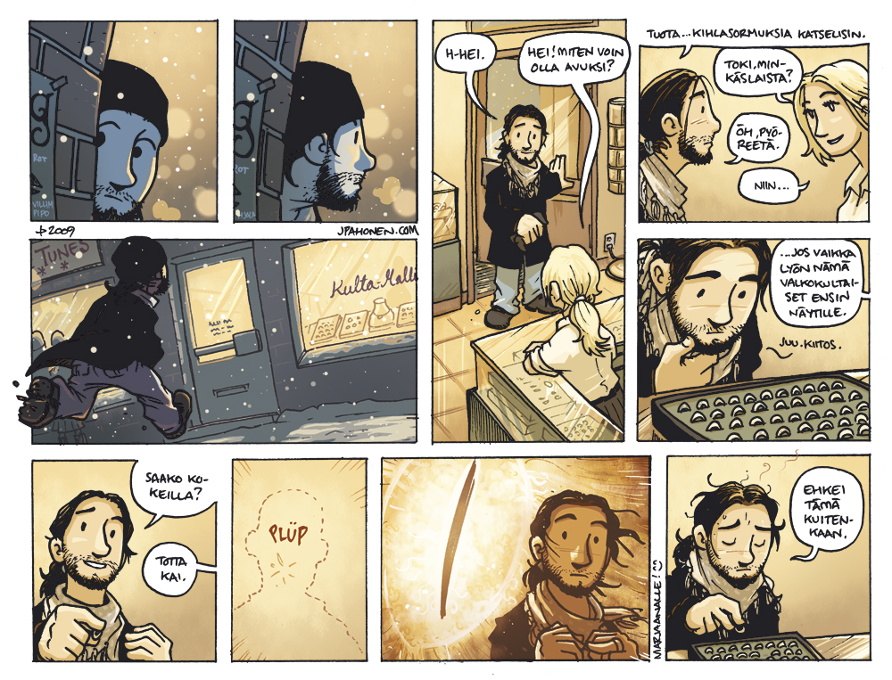 Vaatii ideoiden vimmaa pitää viidenteen albumiinsa ehtinyt sarjakuva edelleen freesinä, koskettavana ja kiehtovana. Tähän tavoitteeseen JP Ahonen on yltänyt kerrassaan kiitettävin arvosanoin, sillä uusin Villimpi Pohjola, nimeltään Valomerkki, on tiukkaa kamaa. Tavoitteeseen päästäkseen on sarjakuvittajan toisaalta pidettävä riittävän moni asia samana tai ainakin tunnistettavana, vaan toisaalta paikalleen ei missään nimessä saa jäädä. Asioiden ja tilanteiden on muututtava selkeästi ajan funktiona.