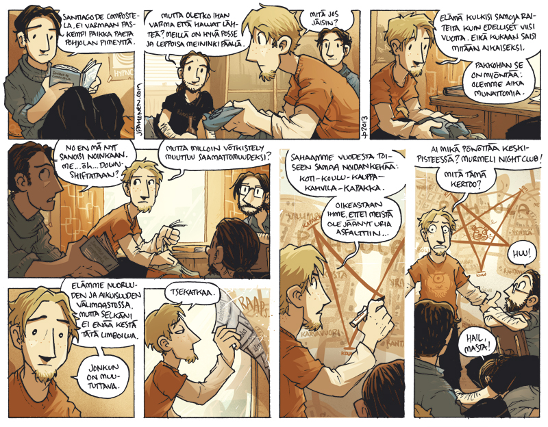 On kuin omaa elämää ja kaveripiirin elämää katsoisi täältä vuosikymmenen takaa. Paitsi että Villimpi Pohjola on tsbiljardikertaisesti kiinnostavampaa seurattavaa. Sivuja käännellessä mukana kulkee siis, lukijasta riippuen, joko tulevaisuuden aavemainen ennakointi, välittömän nykyhetken tuskainen tunnistaminen tai nostalginen trippi nuoruuteen, joka on jo kadonnut ja vääristyy muistoissa yhä kullatumpaan olotilaan.