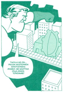 Opportunaristi sisältää kaksi hieman pidempää tarinaa ja nipun lyhäreitä. Arvon Kapteenimme kohtaa muun muassa Uskomattoman Mulkin sekä jättinaisten rodun kaukana esihistorian hämärissä, ja joutuupa hän katkollekin, missä on vähällä joutua katkolle paljon häiritsevämmällä tavalla.Sarjakuvan tyylilajia pohtiville haluaisin osoittaa sankarin itsensä nimeä. No niin. Alapäähuumoriosastolla mennään, edestakaisin, edestä ja takaa. Vaikka onhan mukana tietty määrä häveliäisyyttäkin – miehiset elimet esiintyvät silhuetteina. En voi kuin epäillä, että näin on tehty vain syyllisten tunnistamisen hankaloittamiseksi. Tästä taas päättelen, että Kapteeni Kanki perustuu tositapahtumiin.