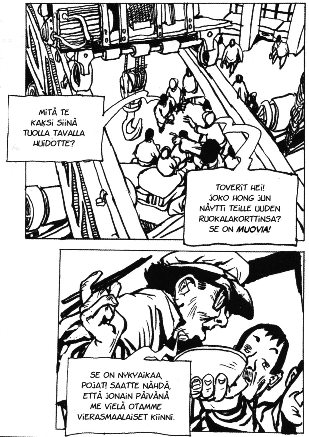Tämä viimeinen osa poikkeaa rakenteeltaan aiemmista kahdella tapaa. Ensinnäkin kronologia hyppii pitkin poikin draaman kaarta, kun vaikkapa lapsuuden kuvaus Isän ajassa eteni hyvin lineaarisesti. Toisekseen mukaan otetaan muitakin näkökulmia kuin päähenkilö Xiao Li. Jälkimmäinen veto ainakin on hyvin perusteltua, sillä Kiinaa mullistavat prosessit toimivat joka suunnalla eikä sarjakuvapiirtäjä ole näkemässä sitä kaikkea täysin omakohtaisesti. Lava-aikaa saavilla ihmisillä on kyllä omat yhteytensä Xiao Lihin, joten suorat linkit kerronnan keskukseen ovat olemassa ja homma pysyy siksi kasassa.