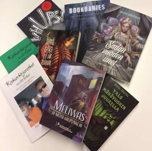 Worldconiksi saatiin sitten pihalle kokoelma Meliwas ja muita kaupunkeja, jossa urbaania fantasiaa lähestytään useista eri suunnista. Mikä onkin toimivan antologian edellytys. Hyviä juttuja kirjassa on monia, mutta esiin nostan Inkeri Kontron mahtavan tyylinäytteen Miespelejä. Jos se ei ole ensi vuonna Atorox-ehdokaslistalla, syön… noh, sanotaan pizzan. Sanoisin muuten kirjakokoelmani, mutta on sitä ehdokaslistalta pudonnut huippukamaa ennenkin. Minkä lisäksi kirjoja on kertynyt jo sen verran, että paitsi etten koskaan saa niitä kaikkia luettua, en myöskään syötyä.