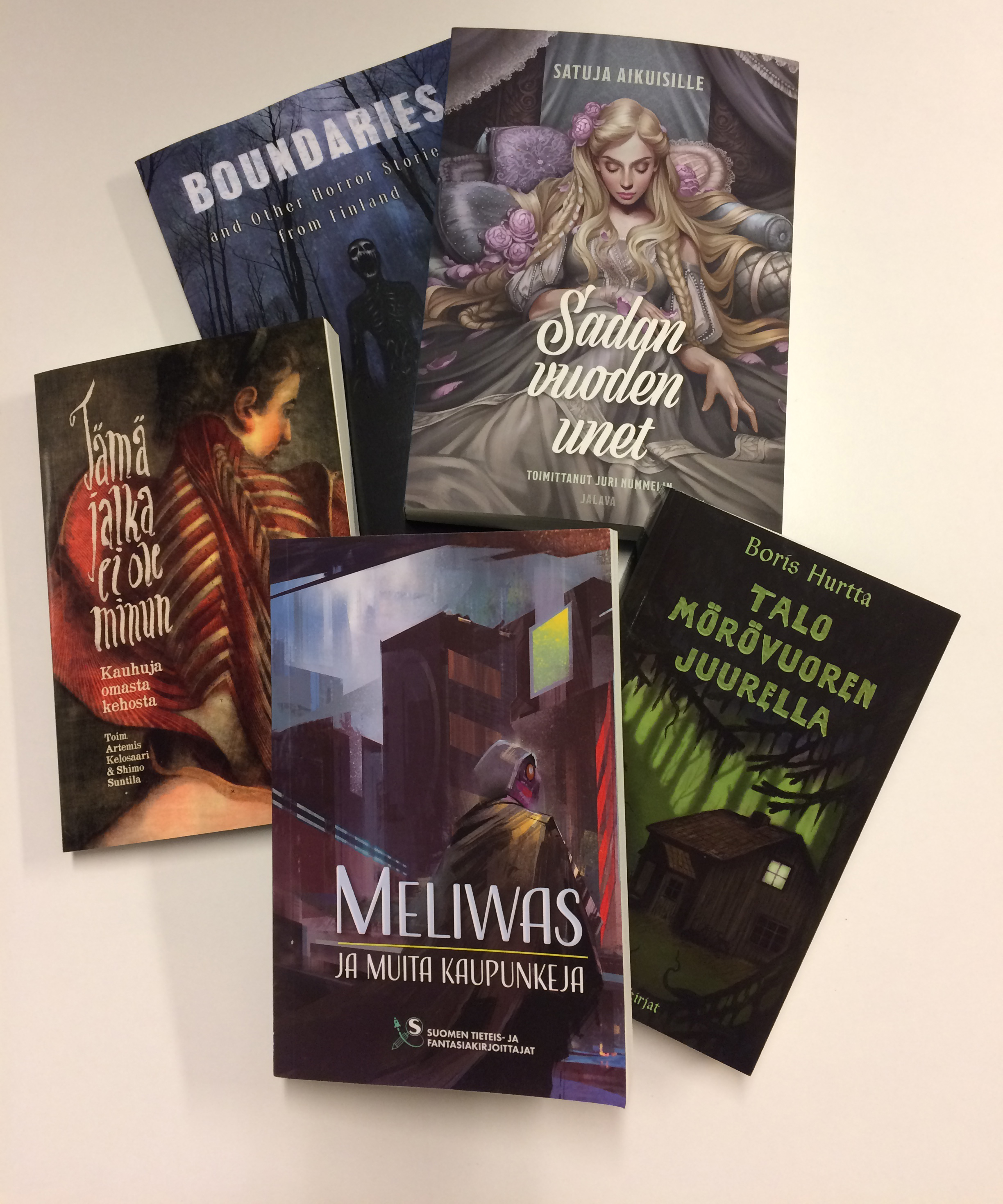 Hurtan koodeksi (Toim. Anne Leinonen, Tuomas Saloranta, Shimo Suntila. Suomen Tieteis- ja fantasiakirjoittajat ry. 2013. ISBN 978-952-6776-52-1)Tilaa Aavetaajuudelta! (loppu kustantajalta)