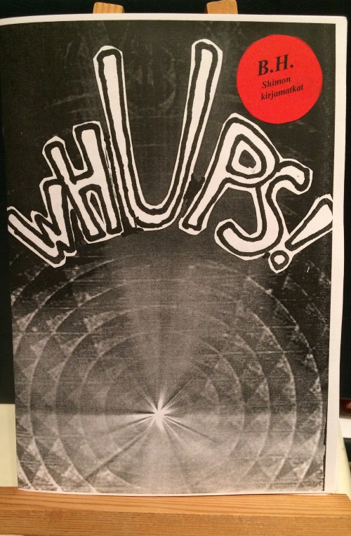 Tästä bloggasinkin jo erikseen. Whups on Boris Hurtan kirjoittama pienpainate, jossa Shimo-niminen höynä seikkailee eri kirjojen sivuilla. Mitä parhain syntymäpäivälahja!